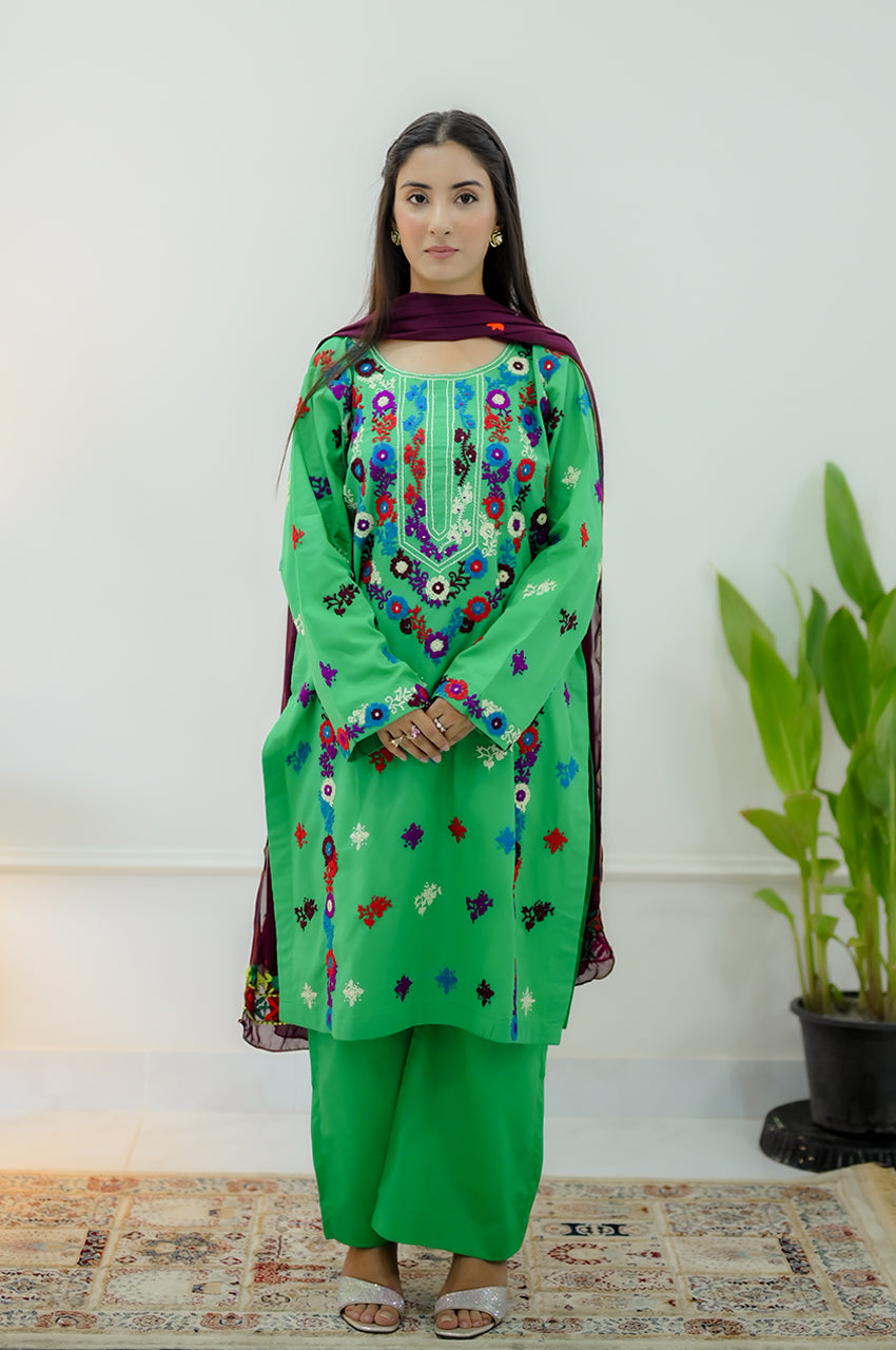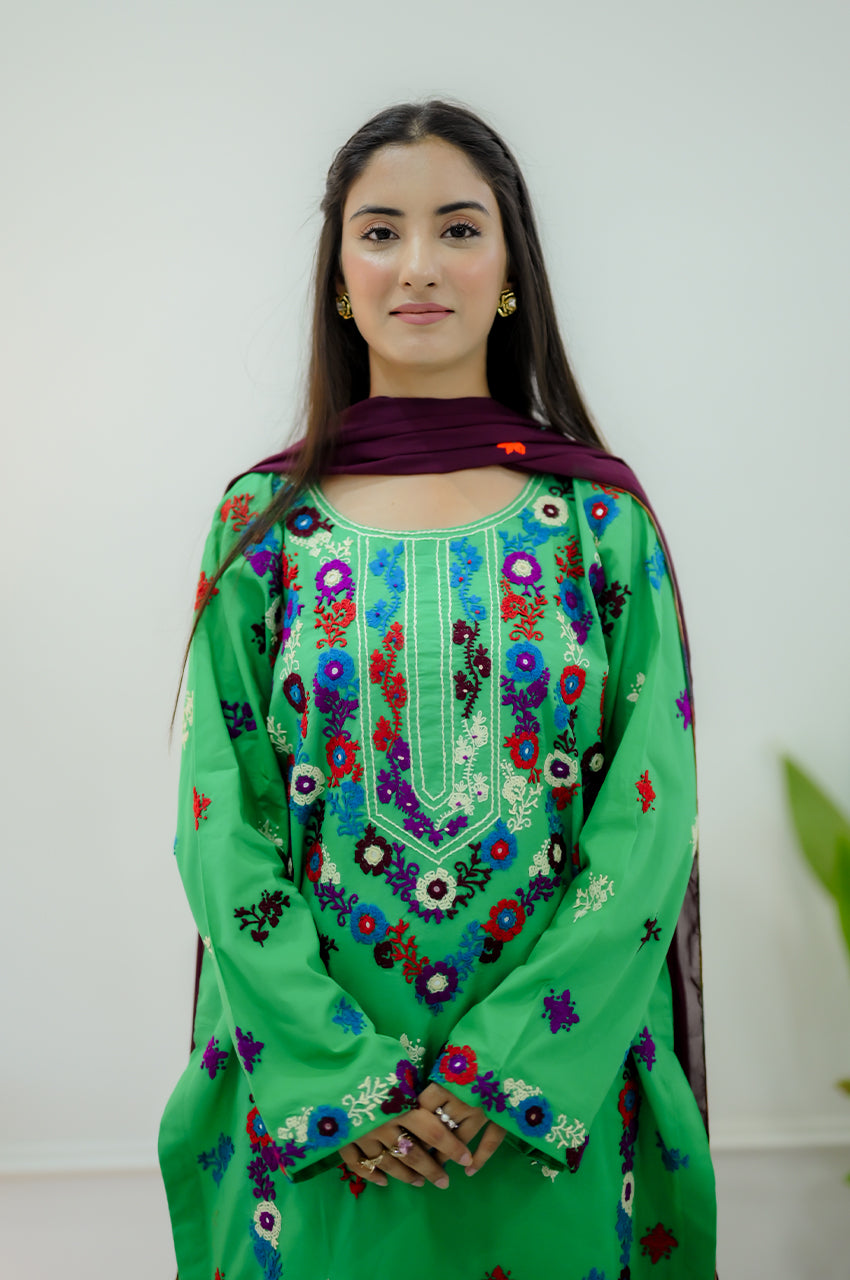 Hand embroidery is a timeless traditional art that transforms fabric into a canvas of elegance, using needle and thread to weave intricate patterns and delicate details. Refresh your wardrobe with our finest hand-embroidered pieces, where heritage meets style.