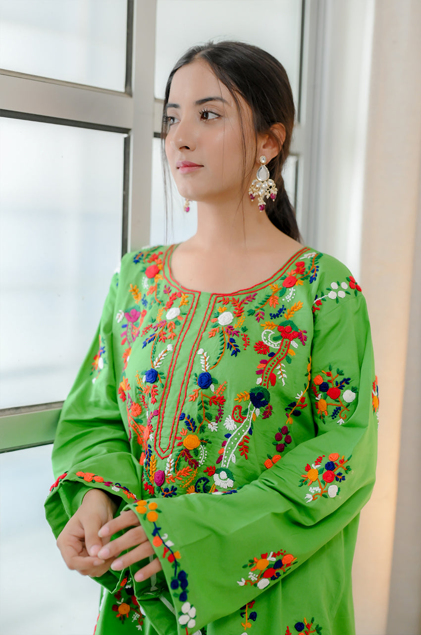 Hand embroidery is a timeless traditional art that transforms fabric into a canvas of elegance, using needle and thread to weave intricate patterns and delicate details. Refresh your wardrobe with our finest hand-embroidered pieces, where heritage meets style.